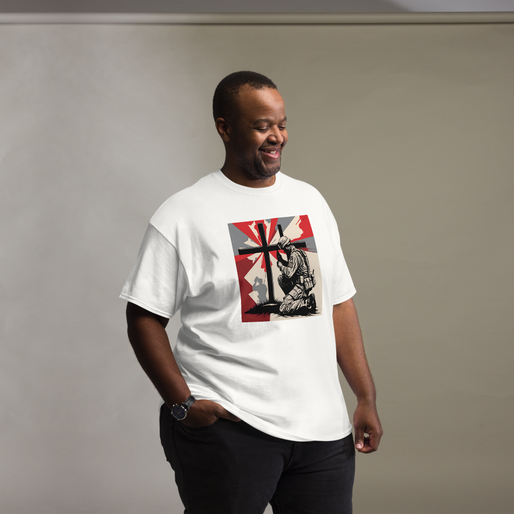 This is design #1 of my "Soldier at the Cross" t-shirt.