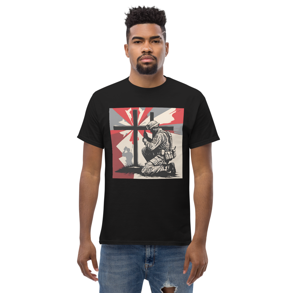This is design #1 of my "Soldier at the Cross" t-shirt.